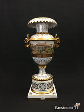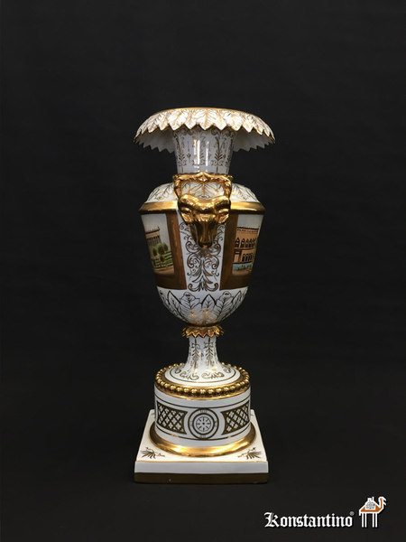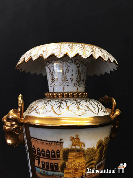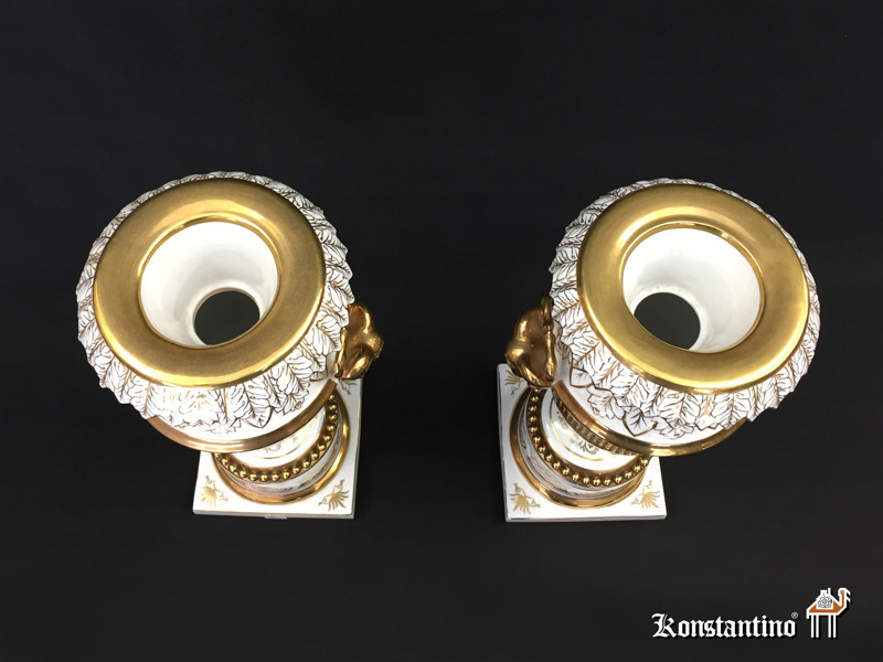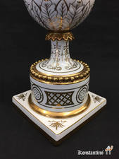 131-132-Ant Pareja de jarrones estilo Imperio, porcelana de Sevres (Francia), 45cm de altura