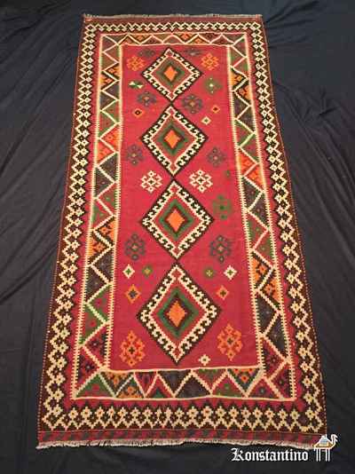 13683-Alf 2,60x1,20 Kilim kashgai semi antiguo, sur de Persia (Irán).Pieza tradicional con fantásticas lanas y colores