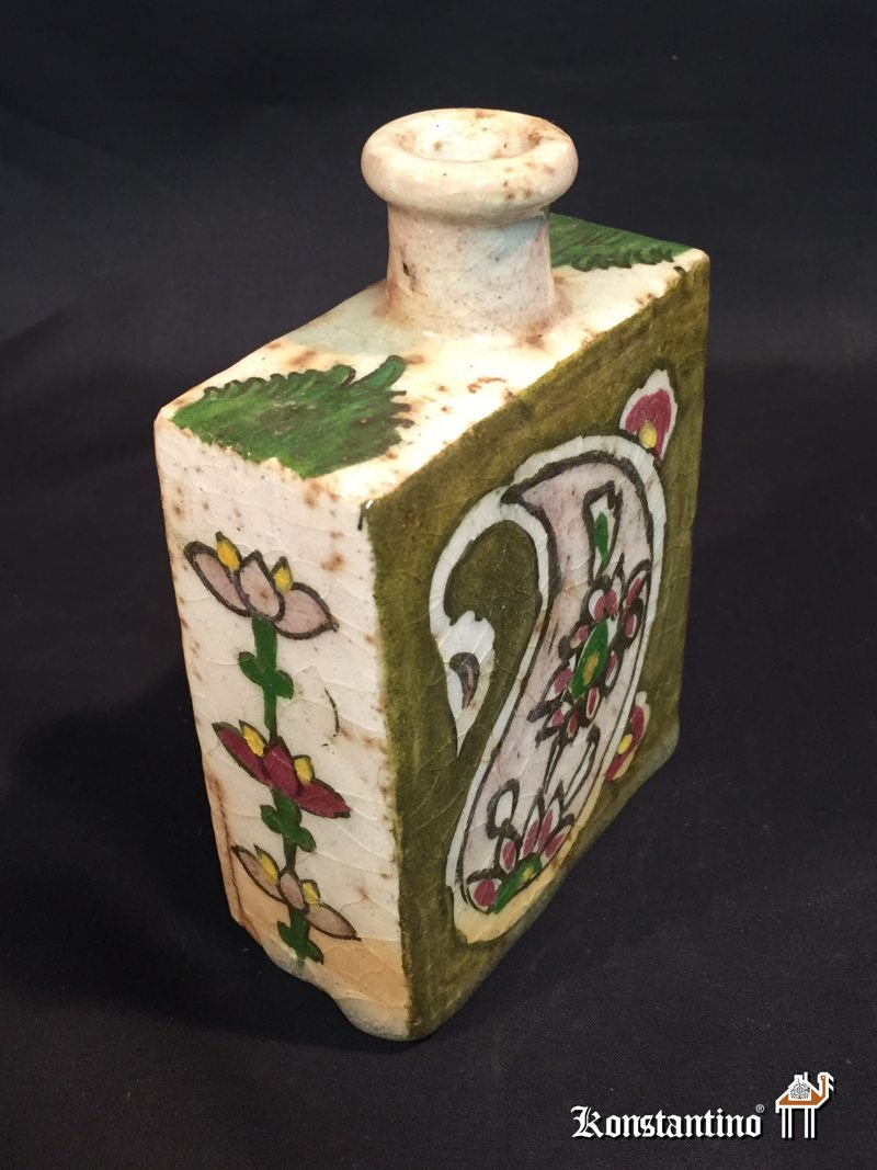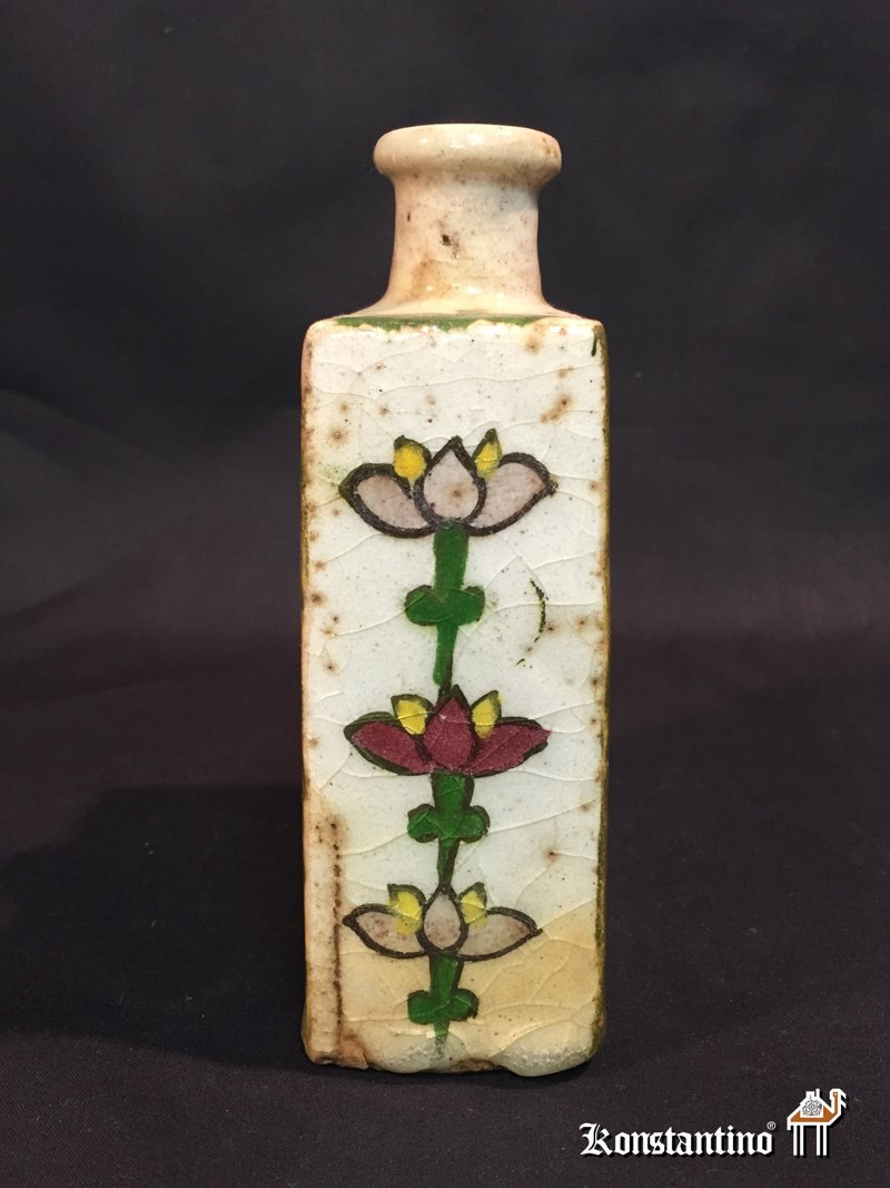1384-C 17 cms vaso persa antiguo de cerámica policromado. S XVII-XVIII