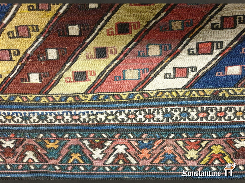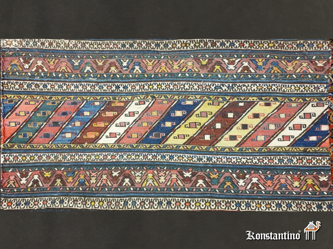 Fragmento de cuna de los nómadas del norte de Persia, pieza de colección en técnica de soumak. Maravillosos colores y espléndido trabajo