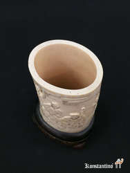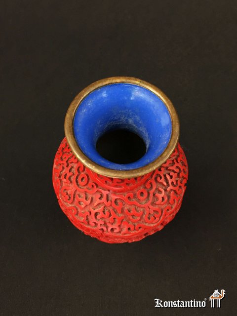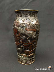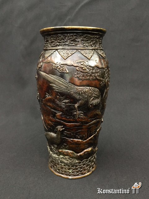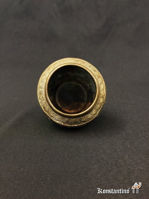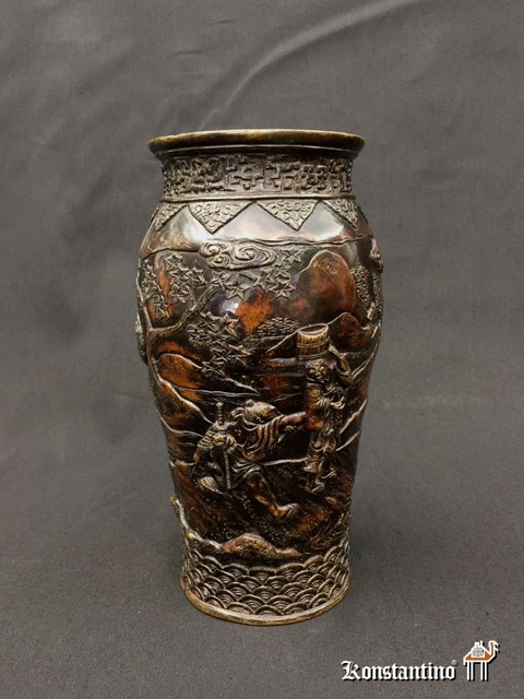 7-H Jarroncito antiguo de bronce con relieves 14x6 cms