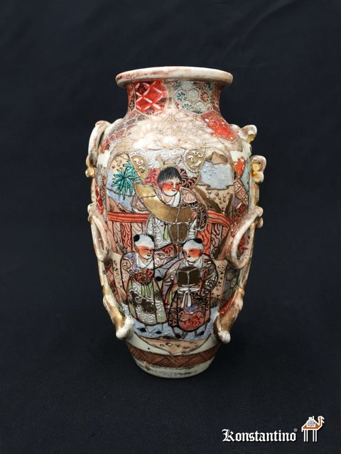 ampliar contenido517-18-C 23 cms Pareja de Jarrones Satsuma policromados con escenas, China s. XIX