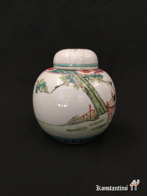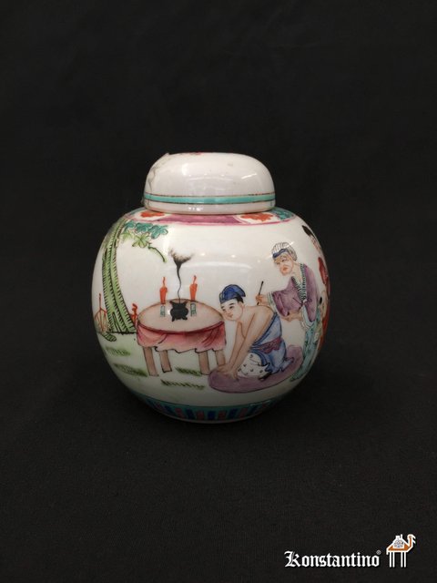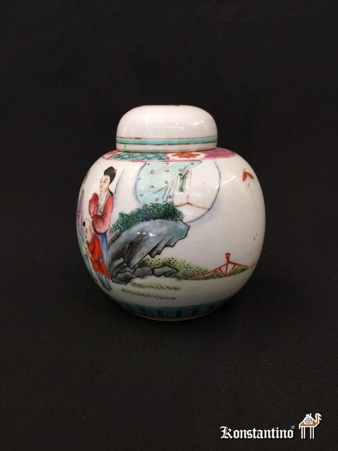 ampliar contenido1114-C 12 cms Potes de porcelana china con tapa de fin del s.XIX de la dinastía Qui, para guardar jengibre o cosméticos