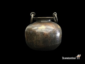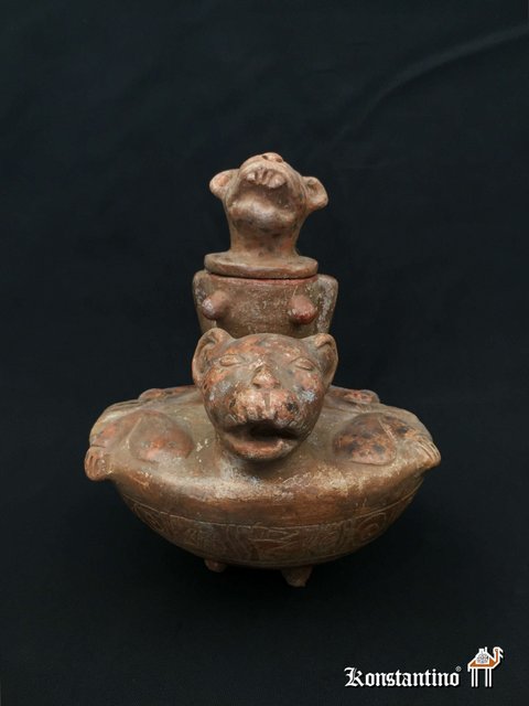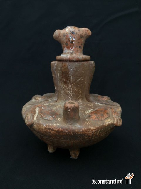 14-Afri Vasija antigua con tapa africana en terracota 26x15 cms